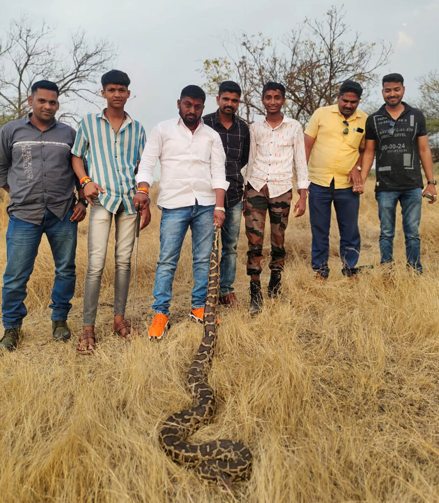 यावेळी अंकित चव्हाण, ओम जंगम, आकाश पवार, बंटी लाहुडे, वामन शेट आदी उपस्थित होते. यावर्षी अजगर, घोणस व मन्यार सर्प जातीमध्ये वाढ झाली आहे. नागरिकांनी कोठेही सर्प आढळल्यास त्यांना मारू नये, त्यासाठी मो.नं. 9370075555 या नंबरवर संपर्क साधण्याचे आवाहन कृष्णा बेरड पाटील यांनी केले आहे…